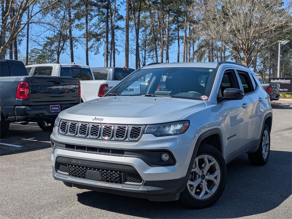 AutoNation Chrysler Dodge Jeep Ram Hilton Head has a wide selection of exceptional pre-owned vehicles to choose from, including this 2025 Jeep Compass. This Jeep includes: MOPAR INTERIOR PROTECTION PACKAGEFloor Mats ENGINE: 2.0L I4 DOHC DI TURBO W/ESS (STD)4 Cylinder Engine Gasoline Fuel Turbocharged BLACK, PREMIUM CLOTH/VINYL BUCKET SEATS (DISC)Vinyl Seats Cloth Seats Bucket Seats SILVER ZYNITH METALLIC CLEARCOAT (DISC)QUICK ORDER PACKAGE 29JTRANSMISSION: 8-SPEED AUTOMATIC 8F30 (STD)8-Speed A/T Transmission w/Dual Shift Mode A/T *Note - For third party subscriptions or services, please contact the dealer for more information.*This versatile SUV is perfect for families or contractors with its oversized cargo area, exceptional horsepower and option upgrades. The Jeep Compass Latitude is economically and environmentally smart. Jeep clearly delivers on its promise to provide a fuel-efficient vehicle that has the great qualities you need in a vehicle.Take home this Jeep Compass Latitude, and you will have the power of 4WD. It's a great feature when you need to drive over tricky terrain or through inclement weather.